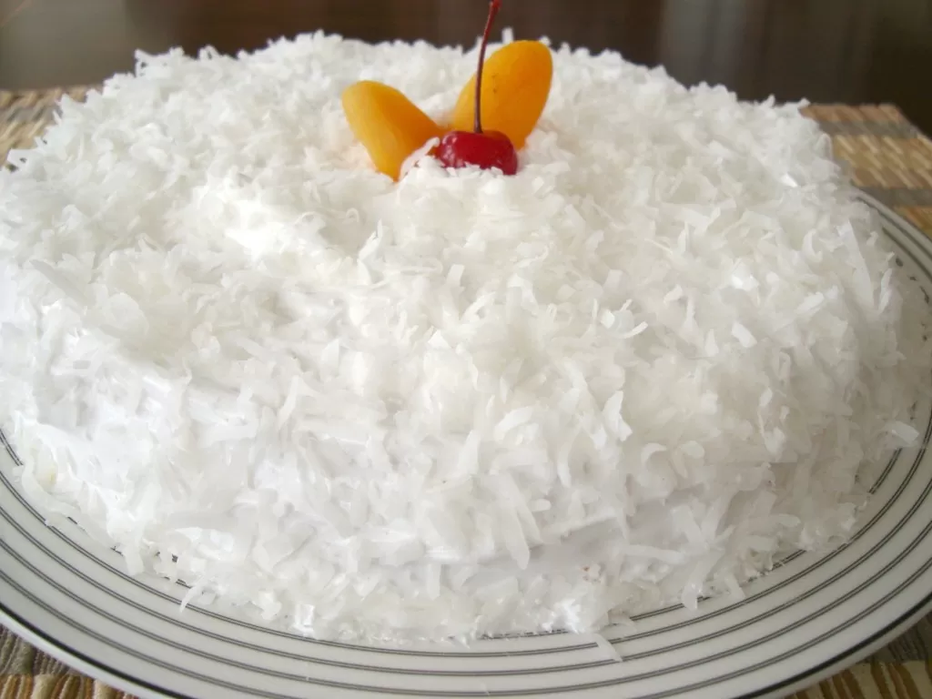 • 11. Cubrir la tarta con el merengue y decorar con el coco laminado.