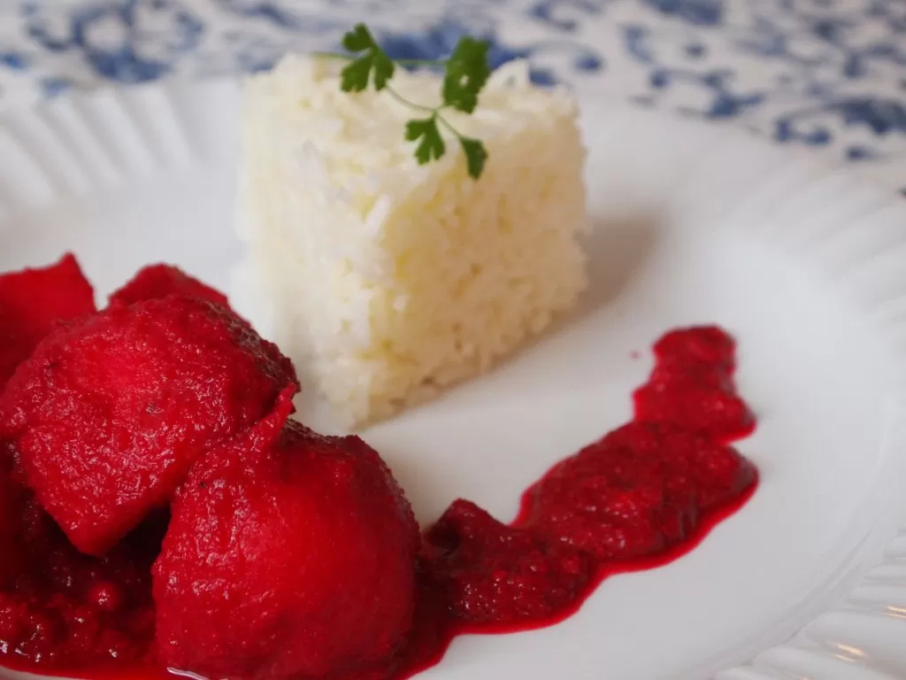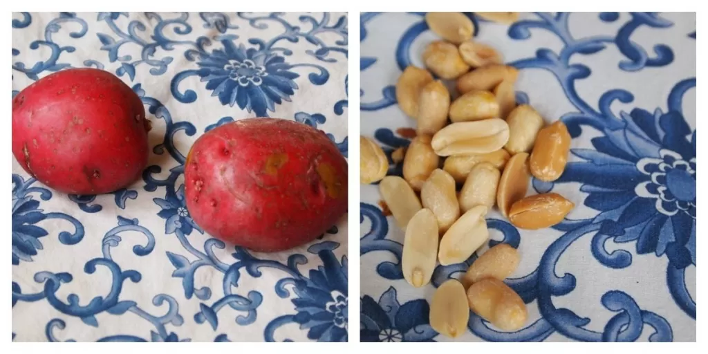 Puca Picante (Papas con salsa de remolacha, chile y maní)