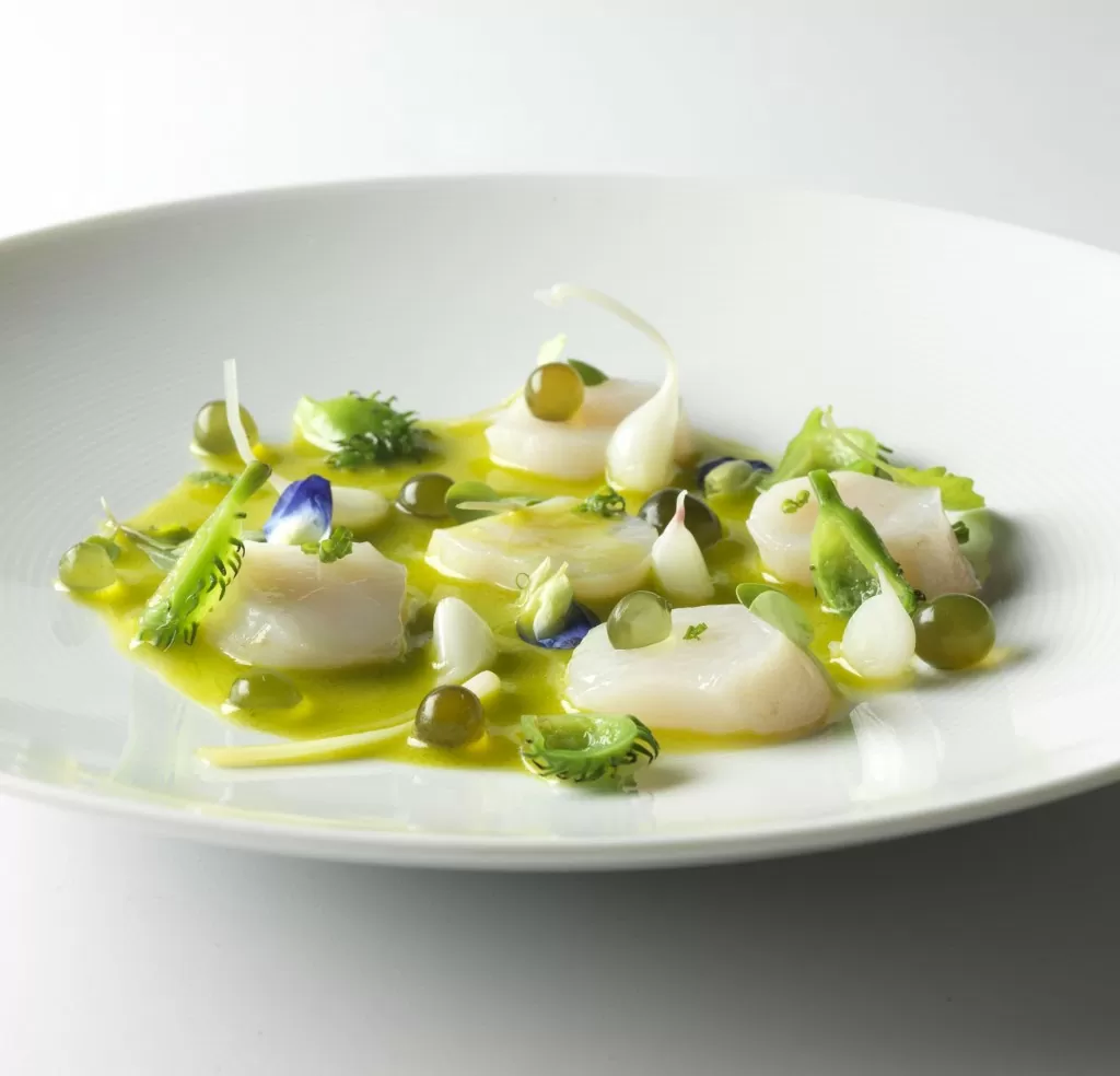Vieiras con jugo verde